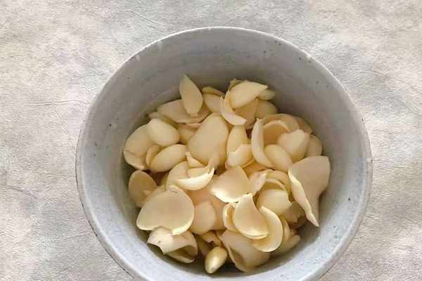 4、鮮百合處理一下,清洗幹凈之後控幹水分掰開備用。