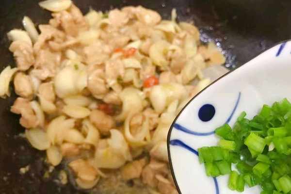 10、出鍋前將切好的蔥花倒入其中,這道鮮美的雞肉炒百合就做好瞭,簡單又美味。