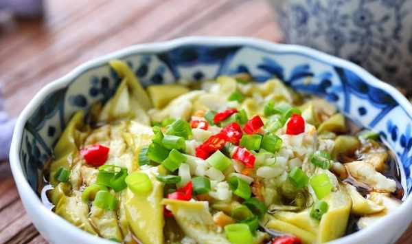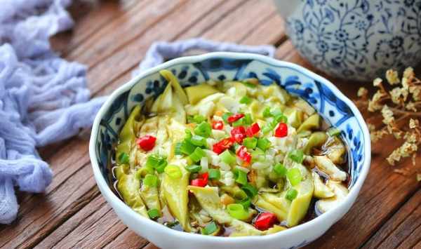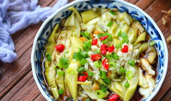 5.把碗取出來,再加入蒜末,蔥花和小米辣,拌勻後就可以吃瞭。