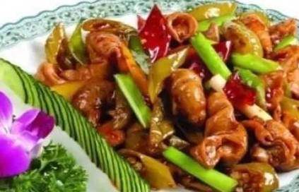 3.最後放入少許味精,翻炒均勻至辣椒斷生,大腸入味就大功告成啦。