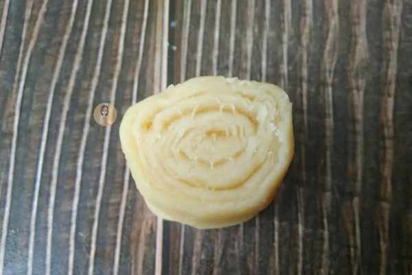 鮮肉月餅的酥很重要,需要反復卷和攤平,操作次數越多,層次越多。
