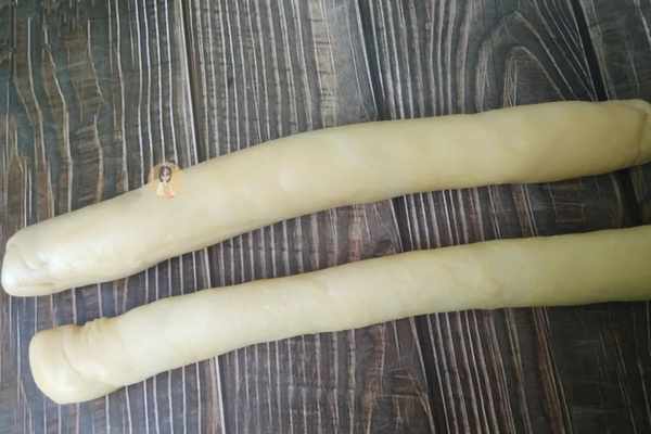 將麵團開口朝上,即使不撒手粉也不容易粘案頭。