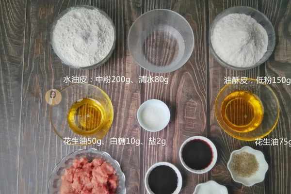 水油皮:中粉200g、花生油50g、清水80g、白糖10g、鹽2g