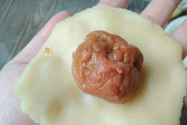 肉糜中可以加入蔥花或青菜末,不過要在包月餅前加入,提前加入小葱或青菜,很容易出水。