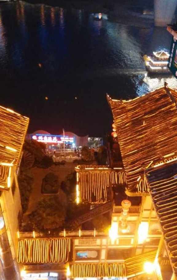 到了洪崖洞,你才感受的什麼是山城,整個就依山而建,你永遠不知道自己到底是在地面還是在地下,因為,洪崖洞的最下一層外是馬路,而最頂層還是車水馬龍的道路。