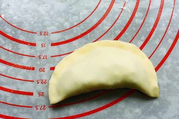 6、把餃子皮合上,收口的地方捏緊一定要捏緊,不然炸的時候容易散。按照這樣的辦法將所有的餃子都捏好。