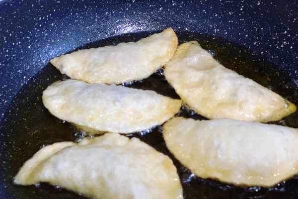 7、鍋裡面加入適量的食用油,油燒熱瞭以後把餃子下進去,一定要比平時我們炒菜的時候還要多,用小火慢慢地炸,炸的時候來回的給餃子翻面,小心將餃子炸糊瞭。把餃子炸的兩面金黃就可以盛出來瞭。
