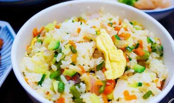 都說人一天中最好吃够5種顏色的食物才算是健康生活。我一碗炒飯就基本搞定了。炒飯中放了胡蘿蔔,蒜薹,黃瓜,洋葱,雞蛋,火腿腸。這飯兒子最喜歡的,百吃不厭。