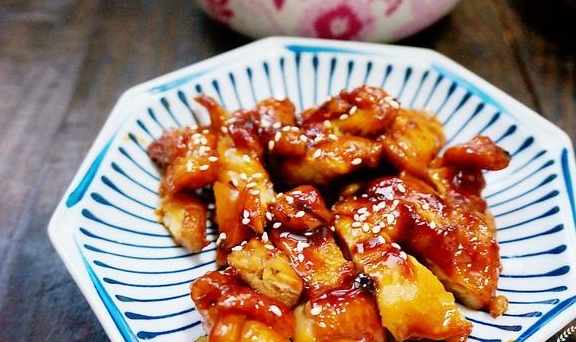 做法:雞腿洗淨,用剪刀去骨。用刀背把雞腿肉拍松。放入少許料酒,鹽,白糖,拌勻醃制十分鐘左右。醃制的過程中調製照燒汁,放入料酒3勺,生抽2大勺,蚝油1勺,蜂蜜1大勺攪拌成汁。平底鍋不用放食用油,開小火。先把雞腿肉有皮的一面朝下煎,煎至金黃再翻面繼續煎至金黃,其間可用鏟子不斷按壓,免得雞肉回縮。倒入照燒汁,中小火,邊煮邊要用勺子把鍋裏的調料汁不斷地澆到雞腿肉上。收汁後就可以出鍋了。因為雞腿肉上還粘有醬汁,所以切肉的時候最好在案板上墊一張油紙或者保鮮膜。