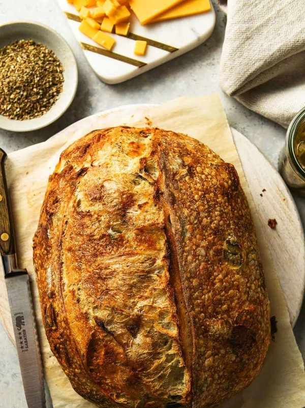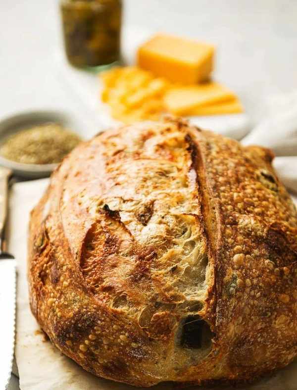 非常受歡迎的墨西哥胡椒切達幹酪面包的做法,酸面包師們一直在大肆宣傳。隻需幾個簡單的調味料,就可以讓已經很棒的原味變得更好。