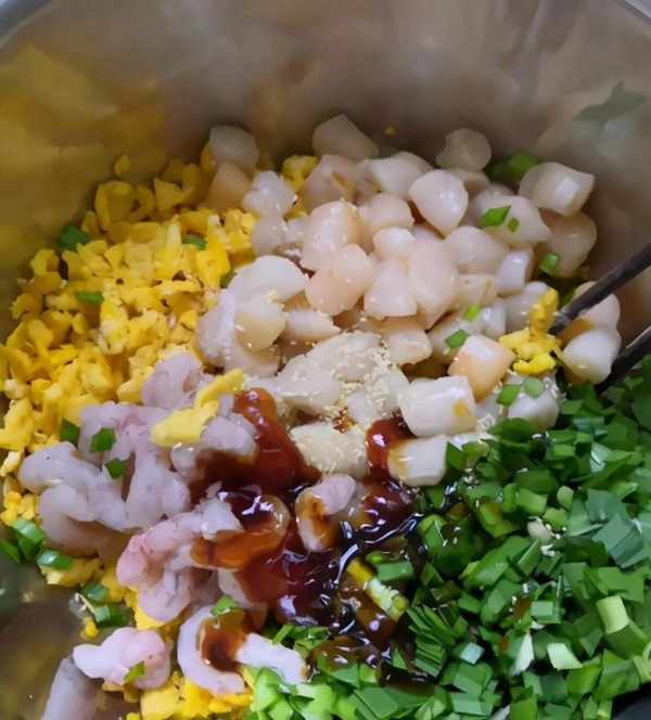 無論怎樣調制餡料,吃起來的口感都覺得不是那個味兒,後來經過仔細琢磨,加上朋友給我分享的方法,才得知在選材上用錯,難怪一點都不好吃,真正的三鮮餡水餃,指的是“韭菜、雞蛋、蝦仁”。