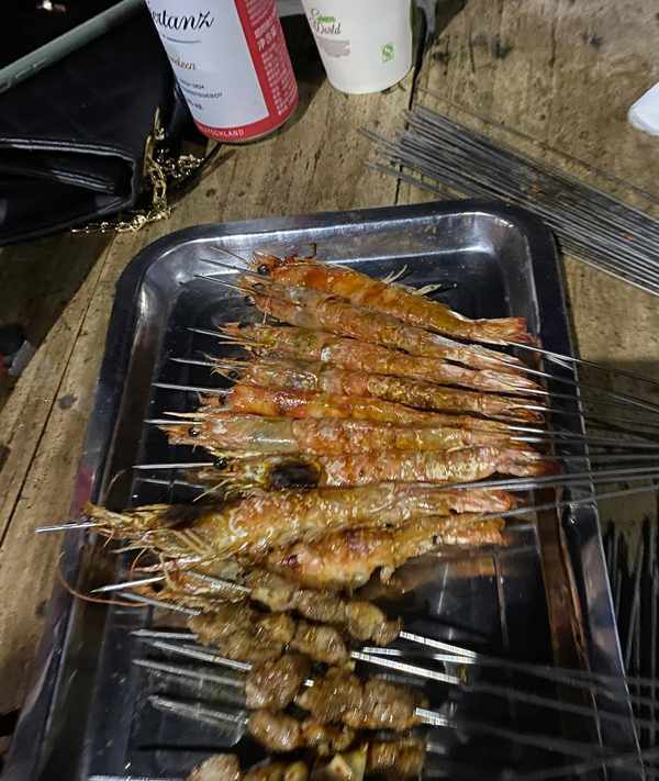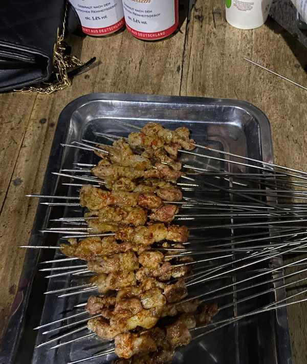濟南小燒烤店遍地都是,但是受前幾年拆違和創建文明城市影響少瞭很多,現在普遍是品牌燒烤店開始崛起,尤其是某金,某陣,口味嘛,仁者見仁,智者見智,作為老濟南人來說,我還是偏愛傳統的老式燒烤。在濟南東部提起燒烤肯定就繞不過老劉燒烤瞭,經營多年,保留傳統特色,羊肉串吃起來就是小時候的味道,甚至連營業時間都很傳統,晚上十點下班,九點半左右就開始結賬收攤,九點半之後來的話基本上就不接待瞭,隻能說營業時間很養生,今天剛好是周六,比較忙,烤的比較慢,但是味道依然不錯,今天點的羊肉串,烤蝦,腰頭,肉筋,骨髓,小紅腰很不錯,可惜今天沒有瞭,腰頭有人說是羊的前列腺,這我還真不清楚,有待考究,味道還是可以的,一聽就很補,[捂臉],啤酒可以自帶,實在是不想喝水啤瞭,自己帶瞭幾個啤酒,話說現在吃個燒烤不算便宜,倆人166,勉強能接受,主要是口味不錯,環境比較隨意