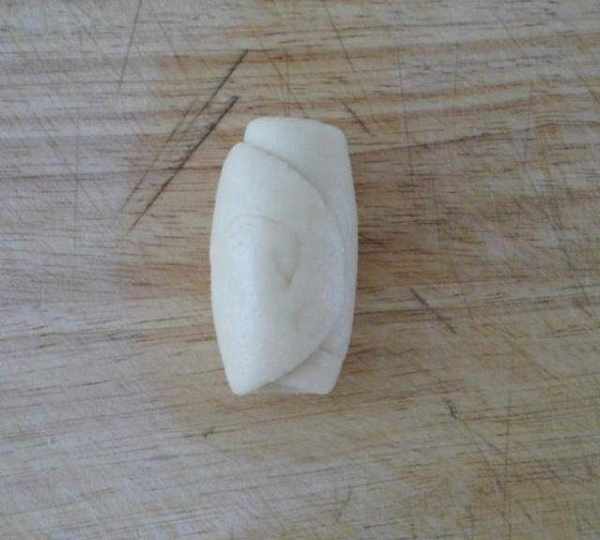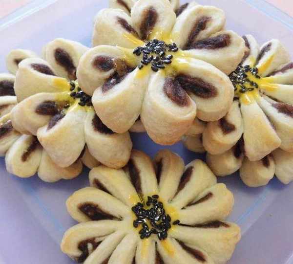 第15步、還剪瞭幾個四葉草形的,是8道口子,扭轉花瓣時,兩兩相對,扭轉45度,豆沙餡朝上