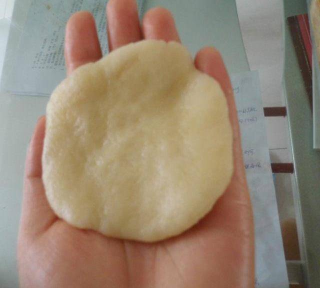 第11步、然後搟成圓形的皮,這個皮就算做好瞭