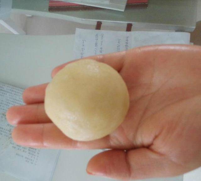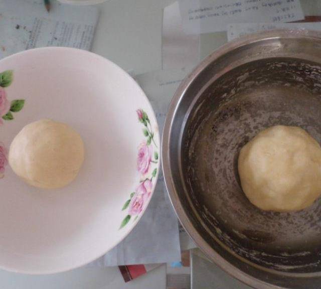 第1步、忘記拍原料照片瞭。首先做水油皮面團,普通粉200克加豬油80克加水傢糖混合揉成光滑面團。然後做油酥面團,普通粉120克加豬油60克混合成面團,分別靜置20分鐘