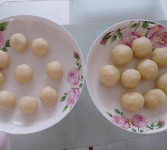 第2步、將兩個面團分別分成均等的16份,我隻拍瞭其中幾個哦