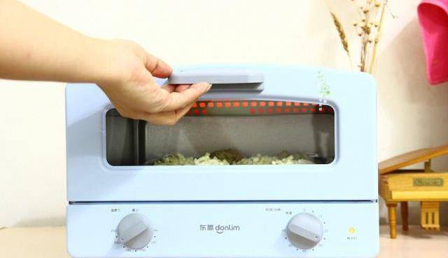 把擺好的餃子皮披薩和烤盤送入烤箱的網架上,200度烘烤10-15分鐘。