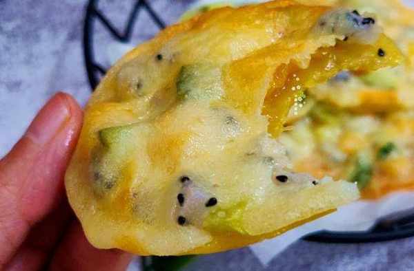 烤好的迷你水果薄披薩,一口一個,香甜薄脆好吃。不揉面不發面的餃子皮披薩做法,你也可以試試哦。