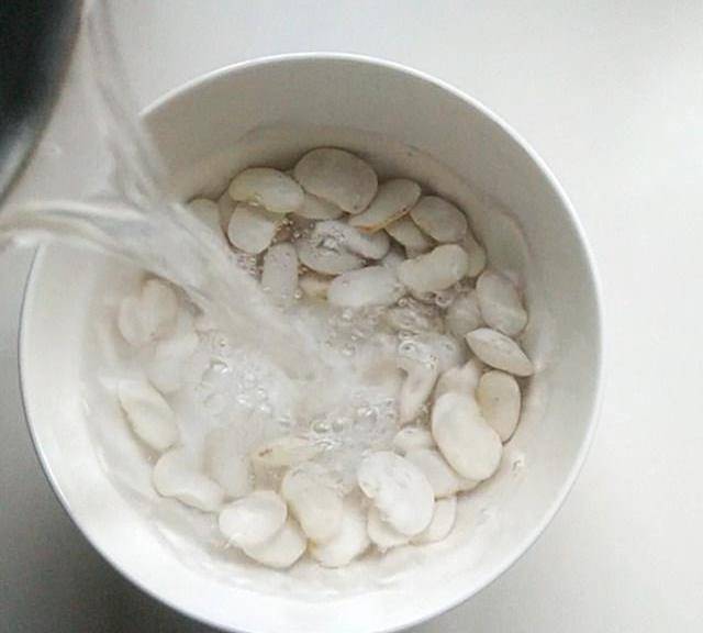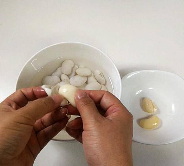 第4步、浸泡得胖胖的白蕓豆撕去豆皮。