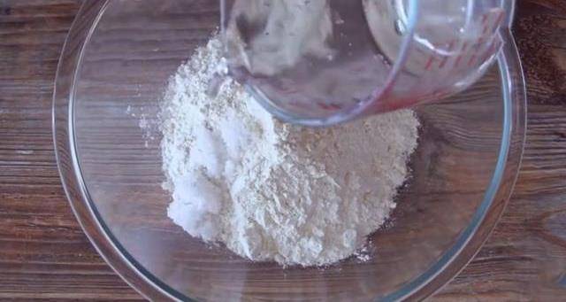 1.盆中倒入500克面粉和5克酵母,再加一勺糖,糖能夠加速酵母發酵。