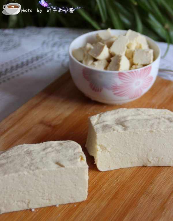 以前用白醋點豆腐,一直也比較成功,隻是美中不足的是做出來的豆腐總是比較老,今天改用內酯點豆腐,做出來特別好,老嫩合適,特別適合紅燒豆腐、麻婆豆腐、豆腐湯等,如果做煎豆腐,就要多壓一會,豆腐更不容易碎。
