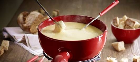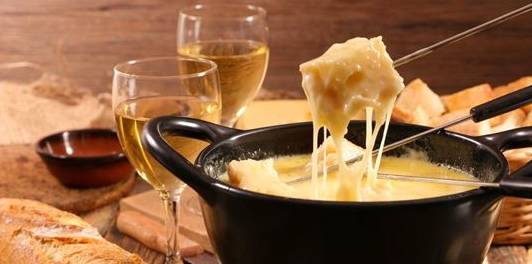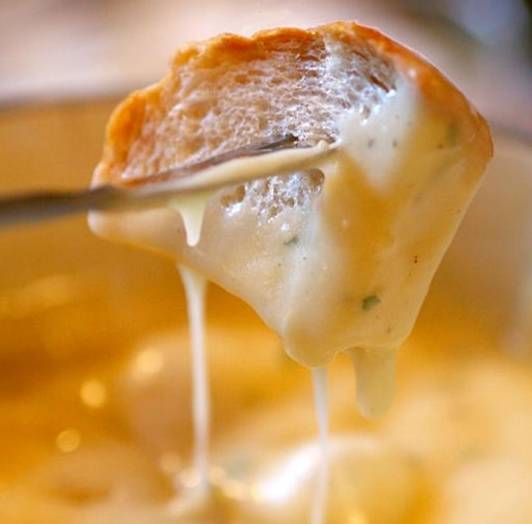 尋一口看著順眼的熟鐵鍋或陶瓷鍋,在鍋底抹上一層大蒜汁,撒些許胡椒,加入碾碎的奶酪和少許葡萄酒,小火緩緩加熱,待奶酪和果酒完全融合,用長柄鐵釬插上一小塊面包......此刻便誰也動不瞭你的奶酪瞭。