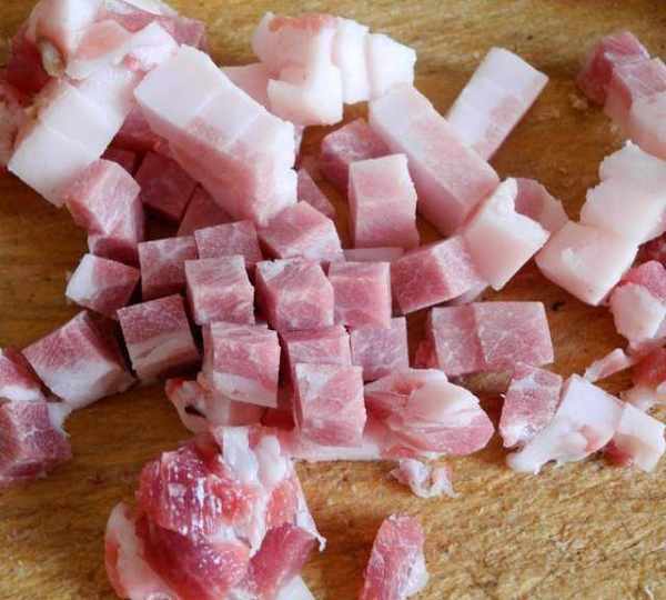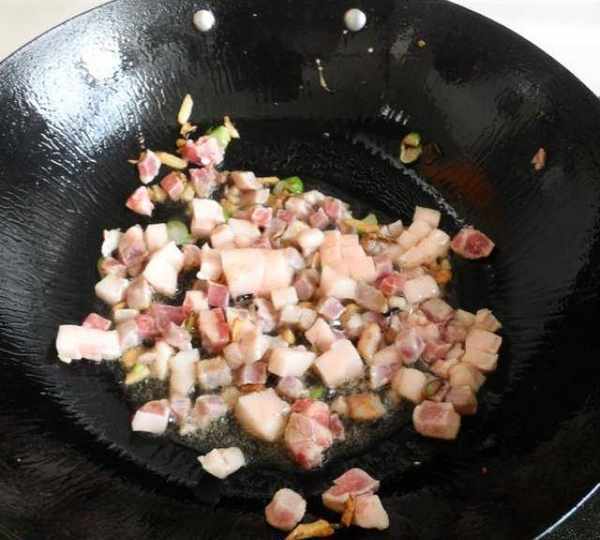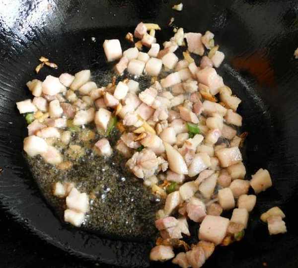 第7步、放入豬肉粒。