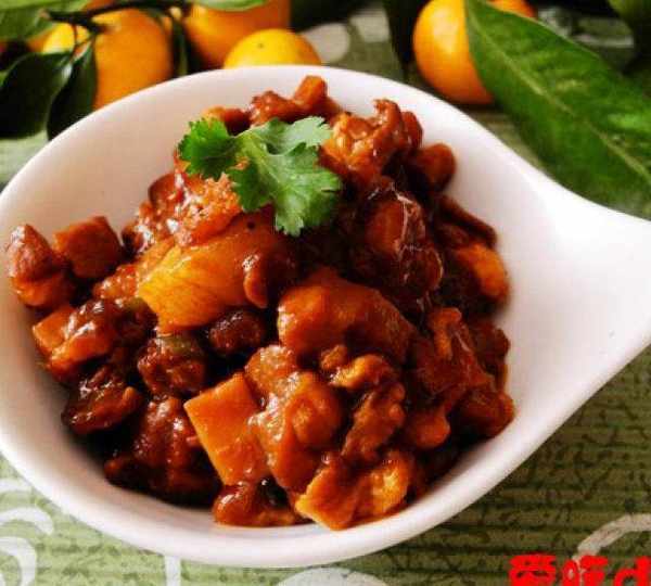 第3步、豬肉洗凈切丁。