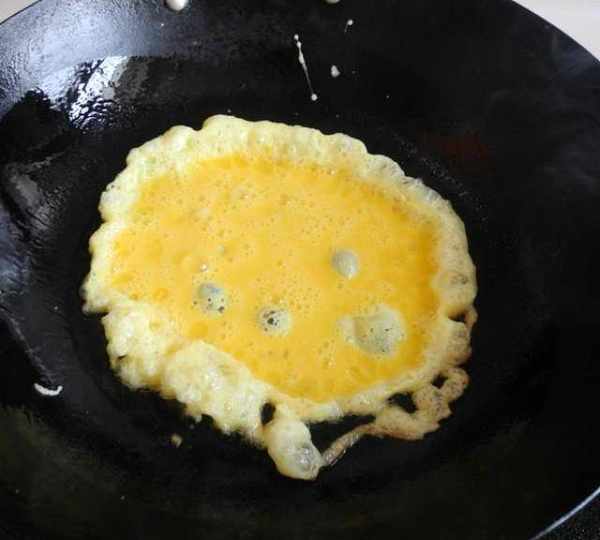 第4步、熱鍋下油,放入蛋液。