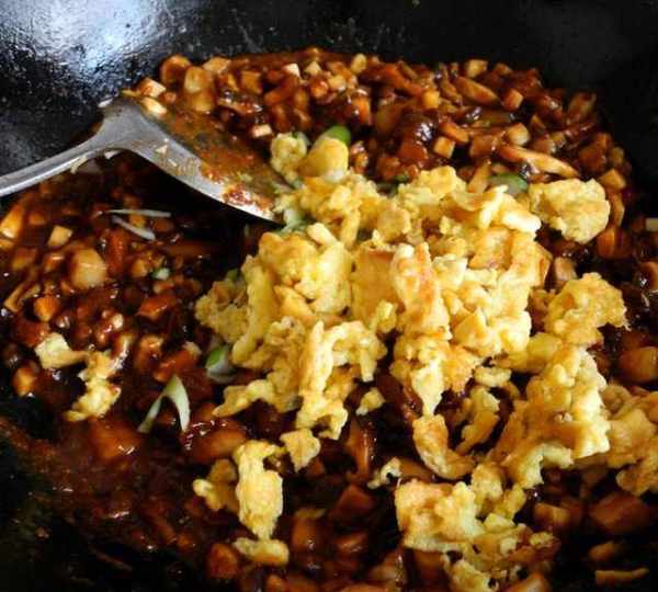 原料:雞蛋、豬肉、香菇、杏鮑菇、豆瓣醬、甜面醬、蔥、薑、花生油、清水。