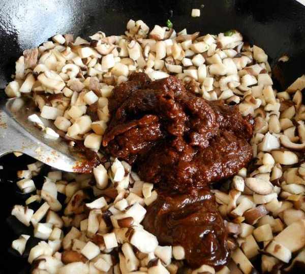第10步、再加入豆瓣醬和甜面醬。