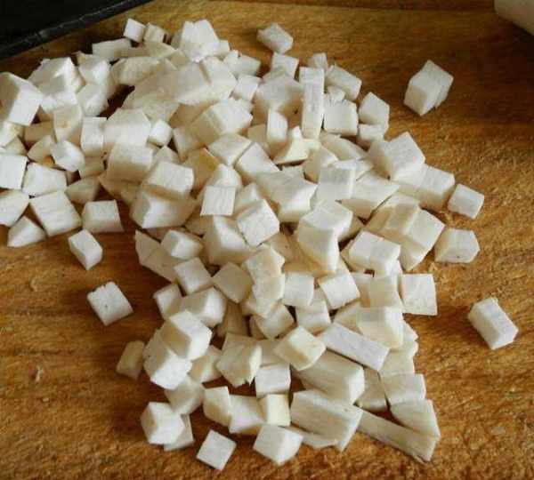 第1步、香菇洗凈切成小丁。