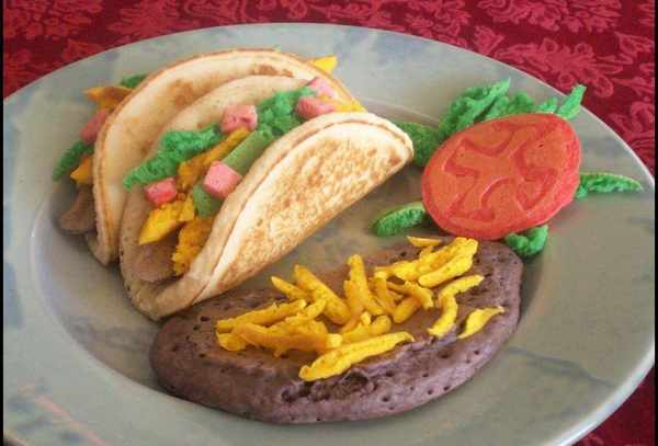 煎餅藝術傢MichaelGoudeau自從改善他的煎餅技術以來,便開始為他的兩個孩子用甜食制作簡單的3D煎餅作品。(圖片來自東方IC)