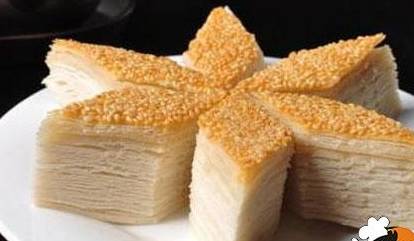 香酥千層餅,又名香掉牙千層餅的前身是山東臨沂地區的千層餅及羅漢餅演變來,香掉牙千層餅在色,香,味型上都別具一格,它不僅外酥內軟,而且色澤金黃,咬一口口餘香。