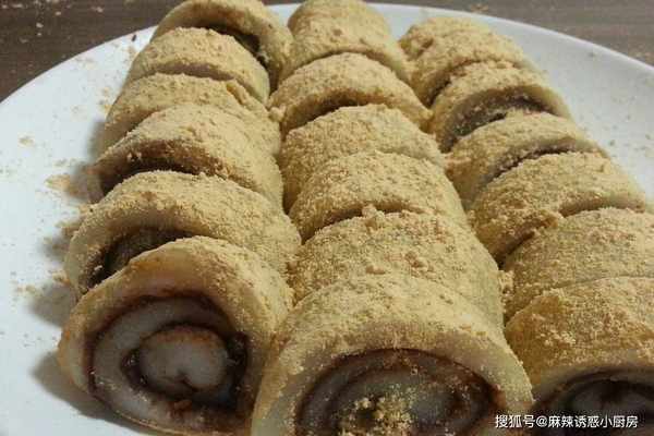 驢打滾,外表金黃,層次分明,入口香、甜、軟、糯,再加上一股濃鬱的豆香味兒,是非常美味的一道傳統小吃。驢打滾這道小吃,北方人可能知道是怎麼回事,但南方人卻不一定知道,更別說老外瞭。最後,才知道這道菜是小吃,是“帶有甜豆粉的由粘性的大米作成的卷”