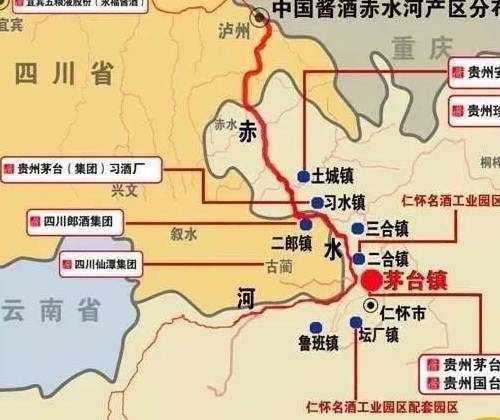 赤水河產區主要還是位於貴州和四川。除茅臺外,四川古藺縣的郎酒和潭酒,貴州省習水縣的習酒、金沙縣的金沙回沙,遵義市其還有珍酒、國臺、釣魚臺酒業等都是位於赤水河產區。即使並不是那麼靠近赤水河,許多企業也都會盡量往上靠。不過確實有一點,以赤水河流域為核心的獨特的小氣候和水質、絕佳的釀酒環境,已經成為瞭中國醬酒的發源地和最大產區。茅臺鎮的氣候比其他任何地方,更適合醬香酒發酵。但是過度地去強調產區,去標榜自己正宗,就有點比較反感瞭。