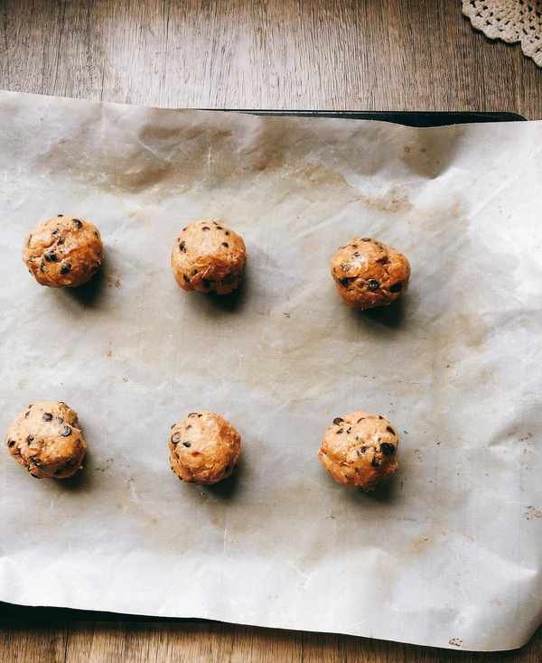 07.提前將烤箱預熱至175℃。餅幹用大勺子或者戴手套挖球,共分12個(分2盤)。