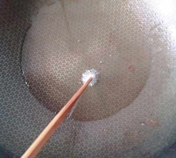 第3步、鍋裡放油多一點。用筷子試溫起泡就行。