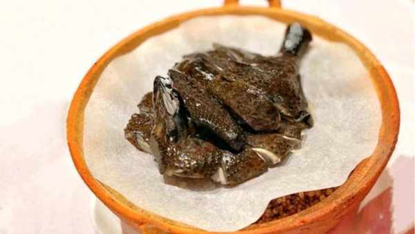 內腔中放入輔料,用吸油紙將醃制好的烏雞包裹好備用,再鋪上一層粗鹽封住。