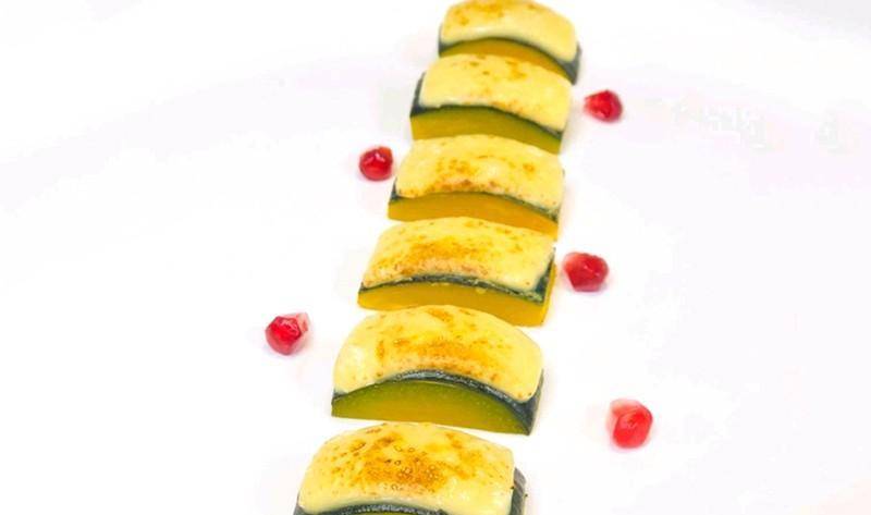 芝士片改刀放入烤好的貝貝瓜烤2分鐘。