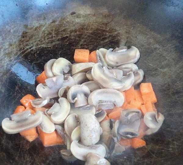 第7步、口蘑入鍋過油。