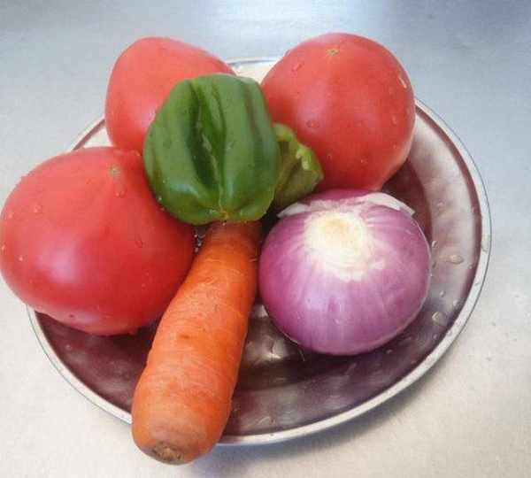 第2步、番茄、洋蔥、胡蘿卜、青椒洗幹凈。