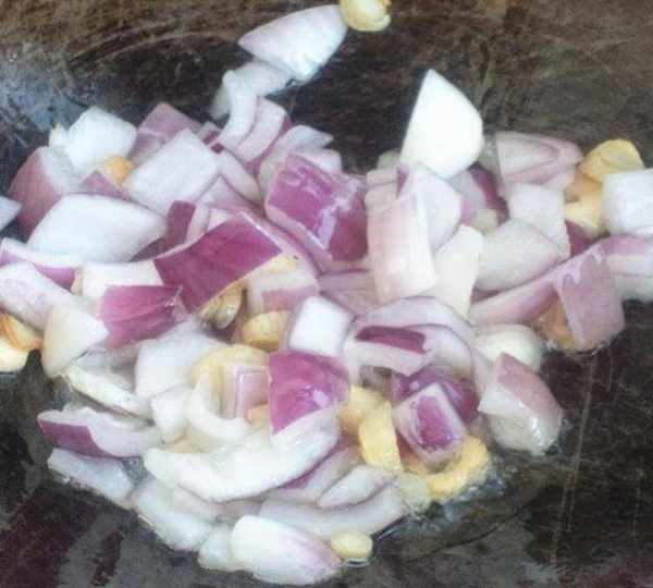 第10步、洋蔥入鍋炒。