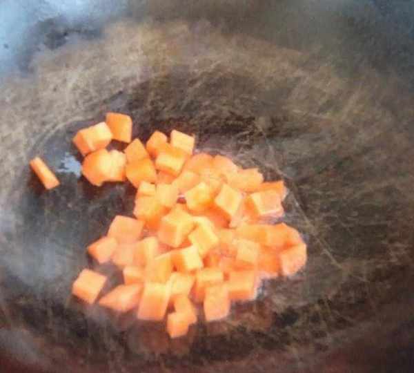 第6步、起油鍋,胡蘿卜入鍋過油。