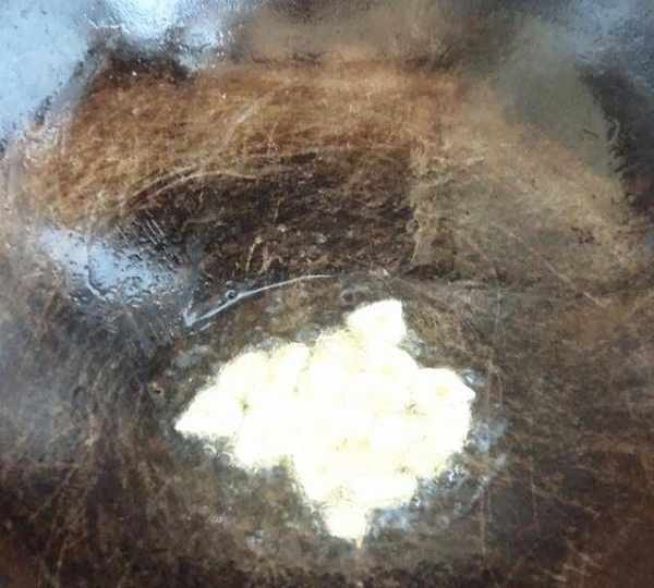 第9步、再起油鍋,蒜片入鍋煸香。