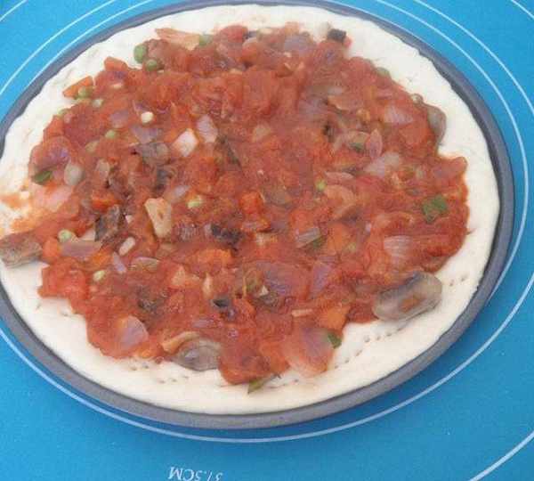第17步、加披薩醬。