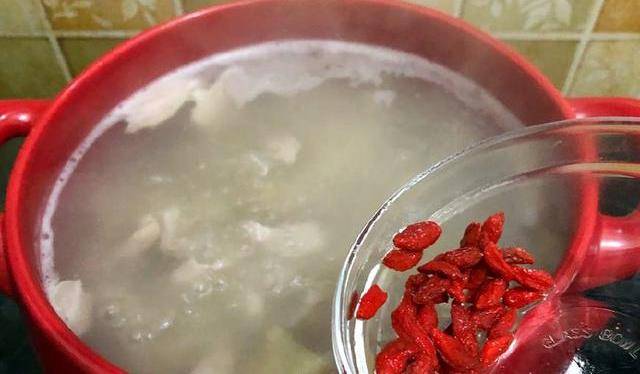 11.撈出切成自己喜歡的大小,再把豬肚放進湯裡加入枸杞子