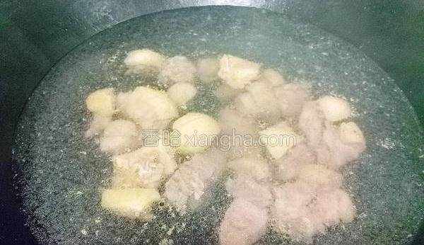 3.鴨肉焯水,撇去血沫。