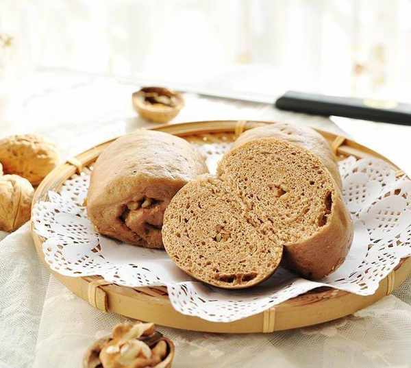 面粉200克可可粉5克古方紅糖50克水100克核桃40克酵母3克