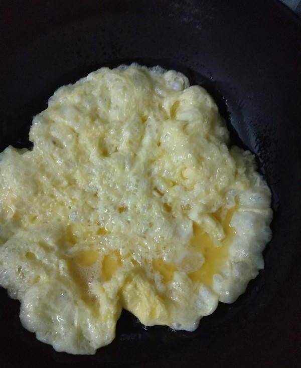 4.雞蛋煎熟,用鏟子切塊